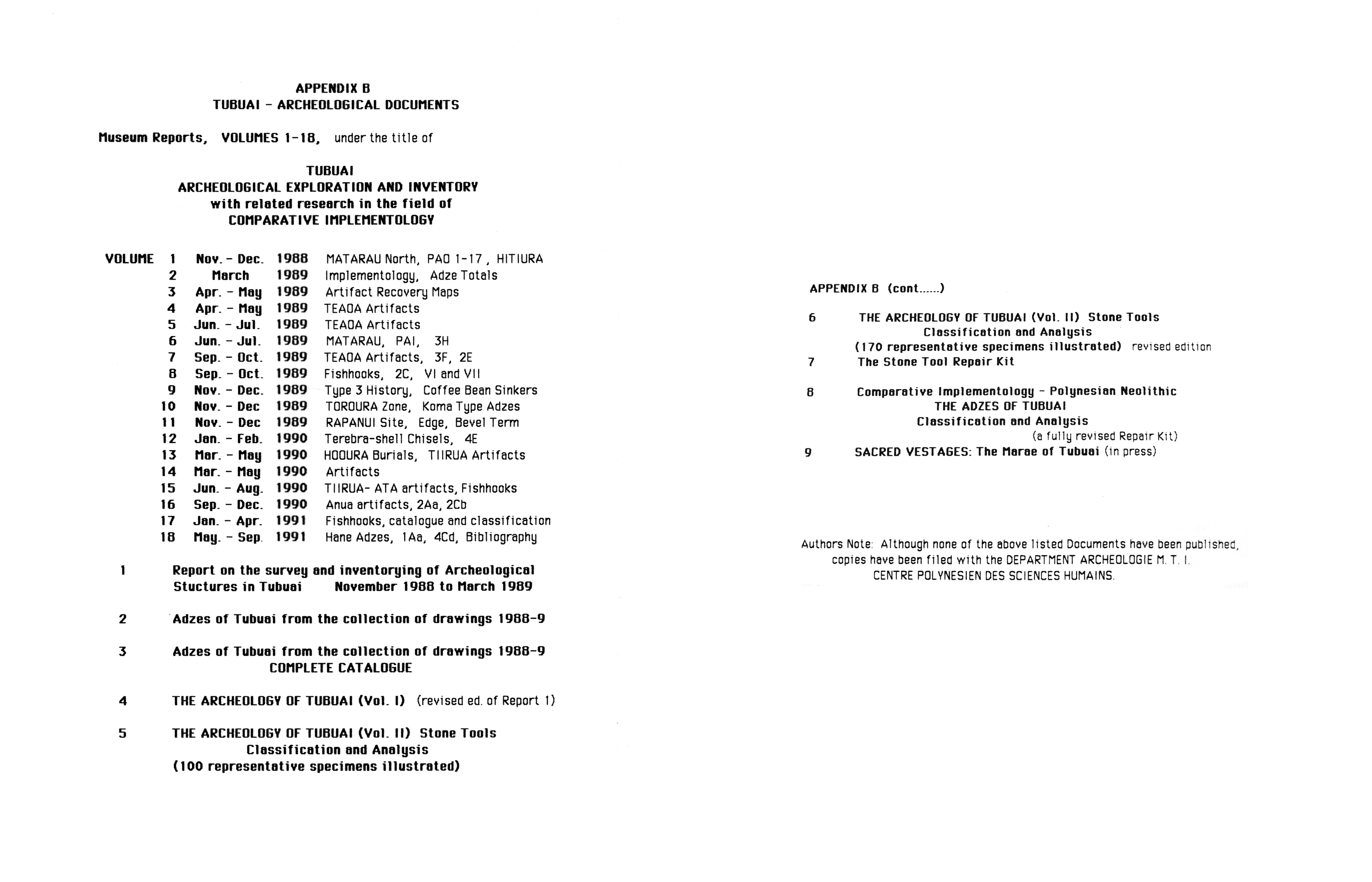 ARCHEOLOGICAL EXPLORATION AND INVENTORY